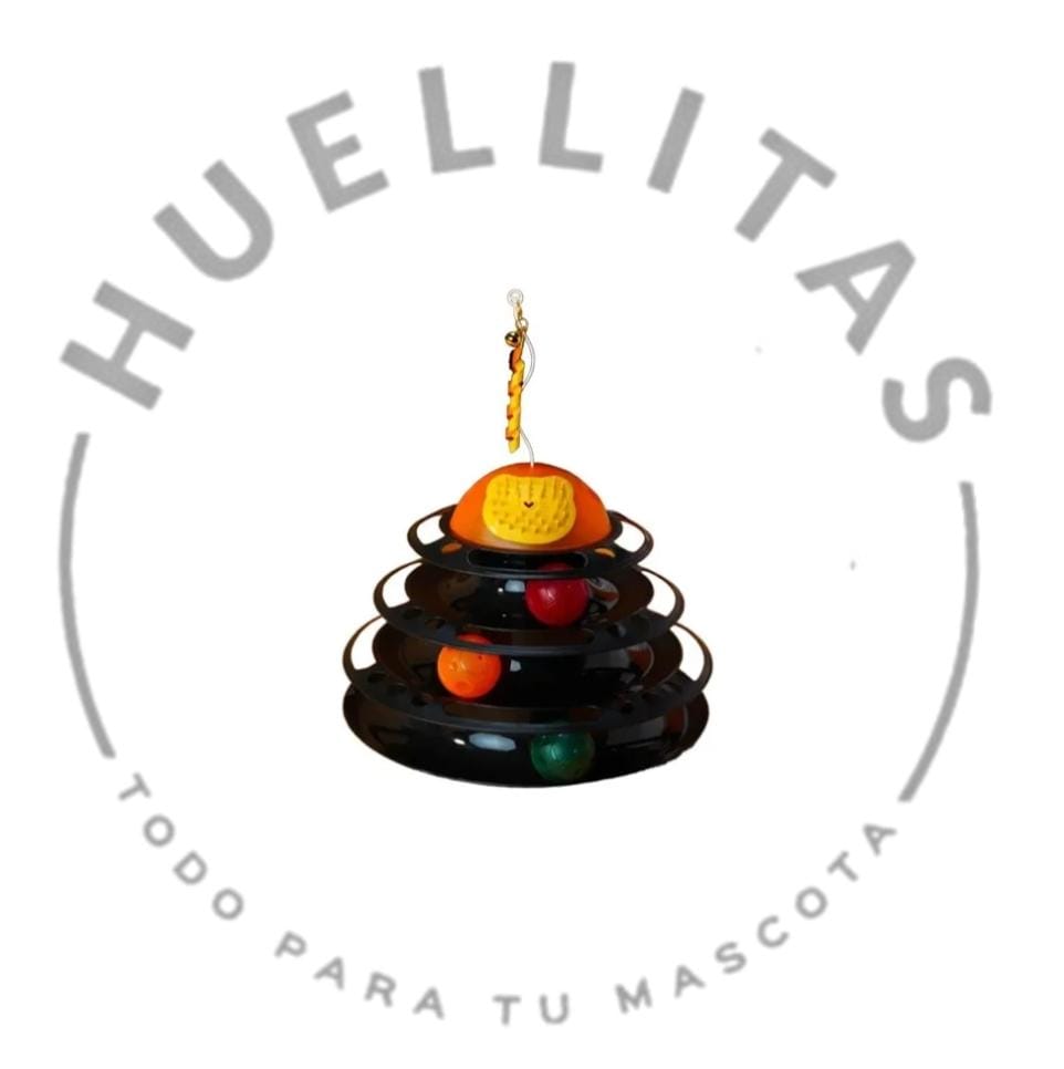 Diseño de varios niveles con pistas circulares para que las bolas giren, incluye un rascador en la parte superior y una pluma para atraer al gato. Diseñado para el ejercicio y el entretenimiento del gato, a menudo desmontable para facilitar la limpieza y el almacenamiento.