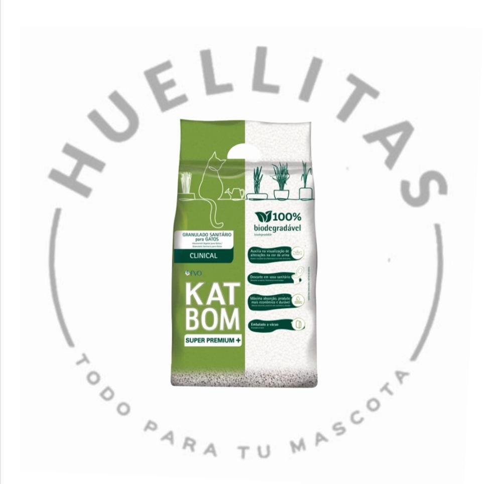 KATBOM CLINICAL SUPER PREMIUM + es un granulado sanitario desarrollado especialmente para la higiene de los gatos y sus gránulos más claros pueden ayudar a visualizar posibles alteraciones en el color de la orina. En cantidades adecuadas, los gránulos de KATBOM evitan que la orina fluya hacia el fondo de la bandeja sanitaria, previniendo así la proliferación de bacterias y malos olores, KATBOM absorbe la orina instantáneamente, formando los terrones antes de que esos olores se desarrollen. Además, al ser vegetal (cereales), puedes eliminar el granulado KATBOM por el inodoro, sin problemas de obstrucción de las tuberías o fosa sépticas.