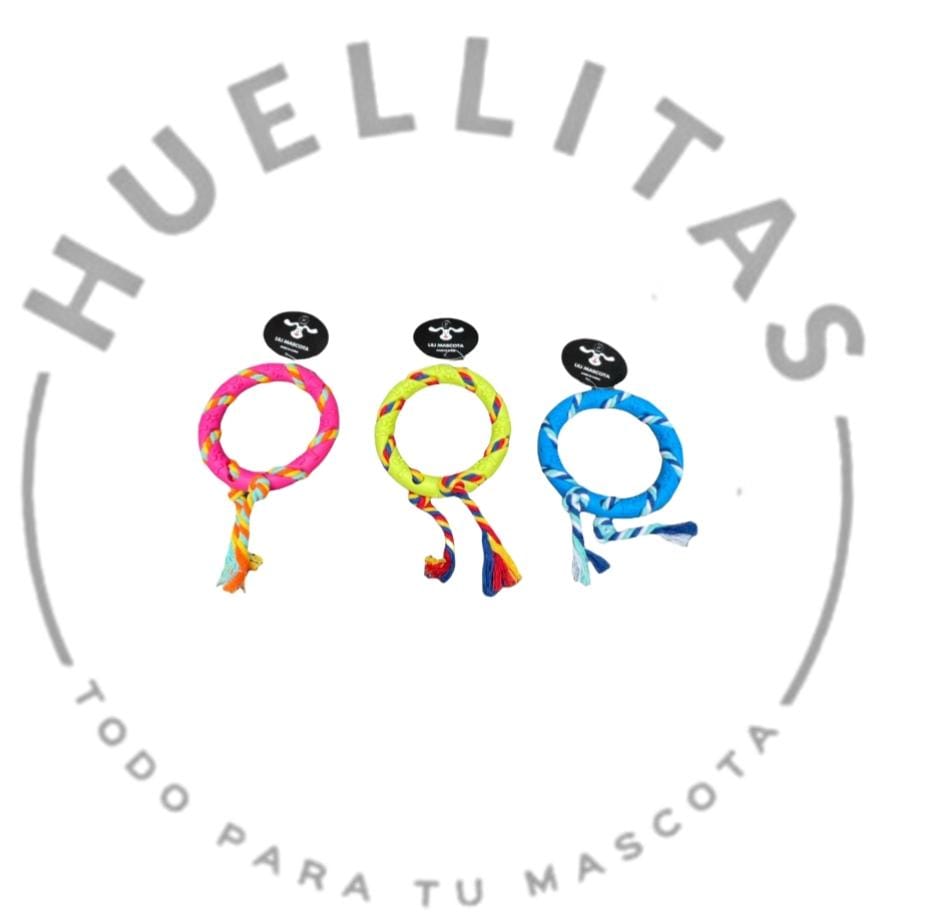 Juguete masticable argolla con cuerda.