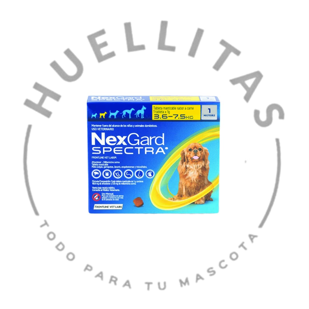 NexGard Spectra® es el único que elimina pulgas, garrapatas y parásitos internos en un solo bocado masticable que a tu perro le va a encantar. Tu perro te lo va a pedir, tu veterinario te lo va a recomendar. Es la más completa protección disponible en sólo un bocado y lo mejor de todo, a tu perro le encantará.