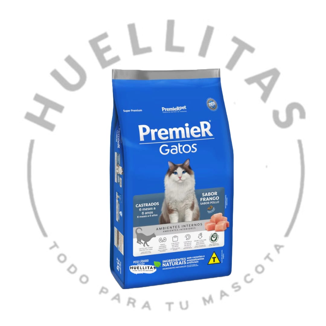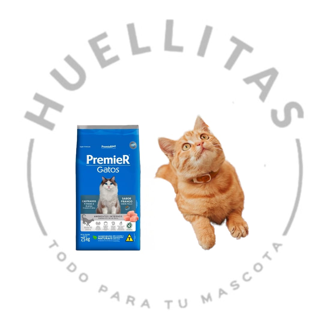 Premier Gatos Castrados desde los 6 meses hasta los 6 años Pollo es un alimento Super Premium que hace parte de la línea PremieR Gatos Castrados, una línea de alimentos especialmente desarrollada para garantizar lo máximo en salud y vitalidad a los gatos a través de cuidados nutricionales específicos tras la castración