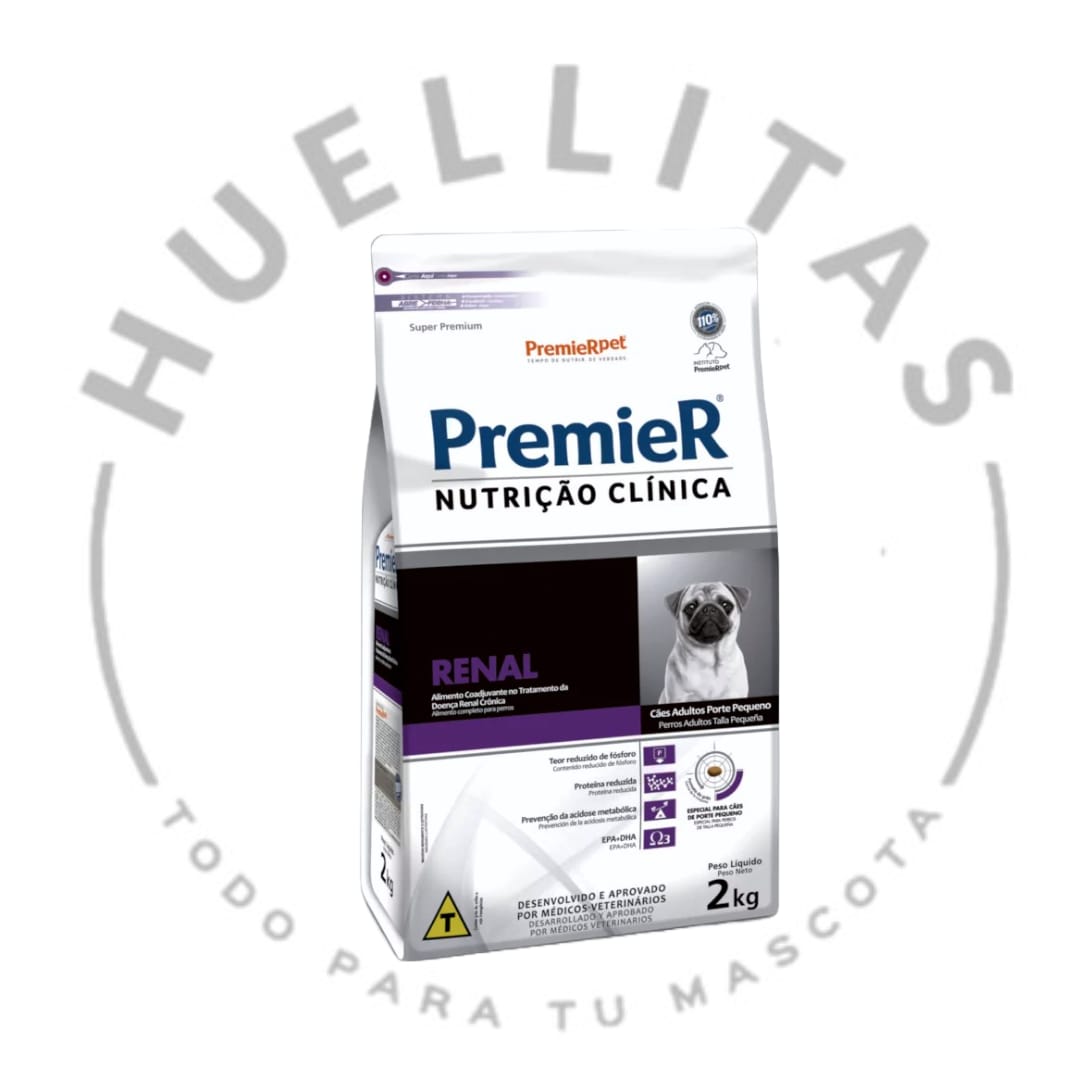 PremieR Nutrición Clínica Perros Pequeños Renal es un alimento auxiliar en el tratamiento de la enfermedad renal crónica y en la disminución de la incidencia de cálculos renales de oxalato de calcio en pacientes nefropáticos.Además del tratamiento prescrito por el veterinario, algunos cambios en la alimentación pueden ser beneficiosos para los pacientes con enfermedad renal crónica. Los objetivos de la dieta son minimizar los síntomas derivados de la retención de sustancias tóxicas y la pérdida de elementos importantes en la orina, retardar la progresión de la enfermedad, proteger el tejido renal que aún está sano y prevenir la formación de cálculos urinarios de oxalato de calcio.