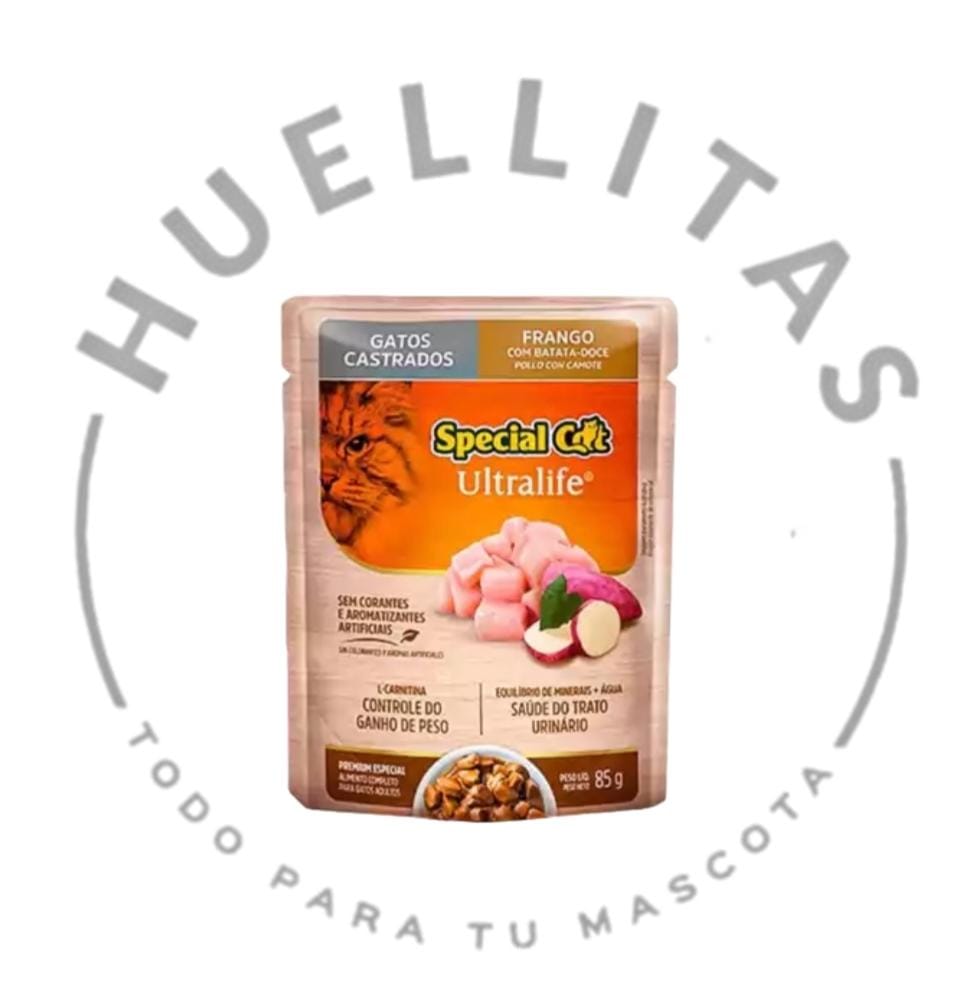 Contiene L-carnitina para ayudar a controlar el aumento de peso en gatos castrados. Posee un equilibrio de minerales y un nivel adecuado de agua para favorecer la salud del tracto urinario, no contiene colorantes ni saborizantes artificiales, y es libre de transgénicos. Incluye proteínas de alta calidad, taurina y vitaminas esenciales para el sistema inmune y un pelaje brillante.