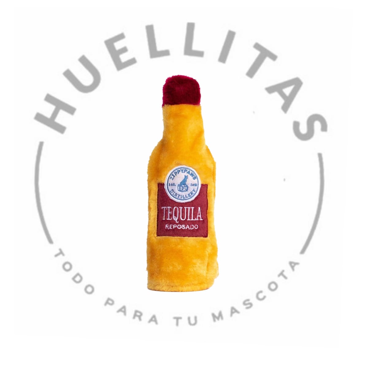 Peluche con sonido en forma de botella de tequila.